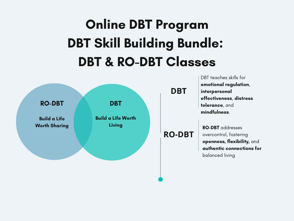Enroll in my Online DBT Program. Learn DBT's four core skill sets: Mindfulness, Distress Tolerance, Interpersonal Effectiveness, and Emotion Regulation. Learn RO-DBT's skills and strategies, including Activating Social Safety, raising Self-Awareness, Fostering Openness, Delving into Emotions, Adapting Flexibly, Living according to Values, Engaging in Self-Reflection through Self-Enquiry, and fostering Meaningful Social Connections through authentic communication and effective social signaling.